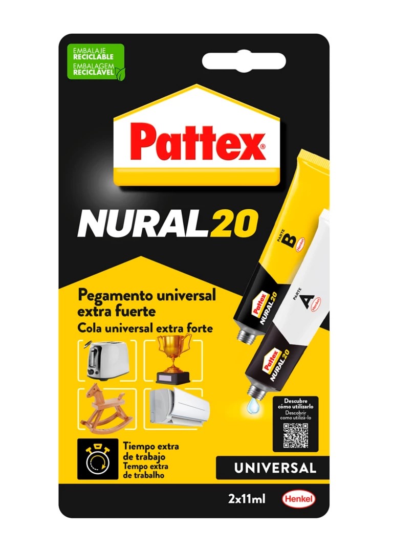 Pegamento universal extrafuerte transparente, ideal para pegar, reparar y rellenar de forma permanente. Ofrece tiempo extra de trabajo y un acabado resistente y duradero.